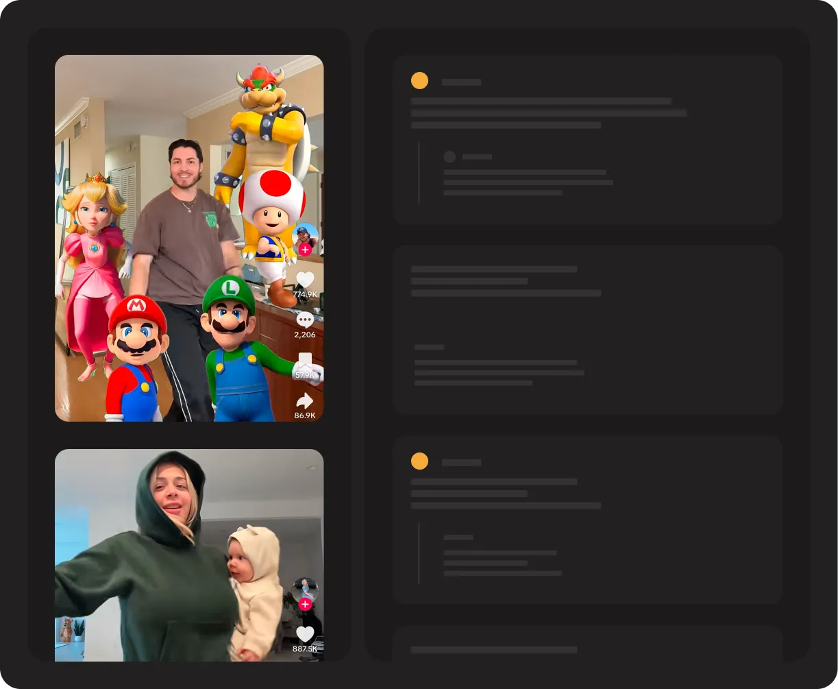 See what people actually think and feel across social video, grounded in real posts, reactions, and comments, not generic AI summaries.